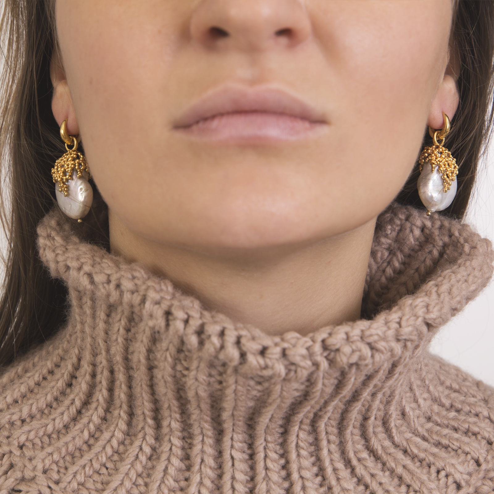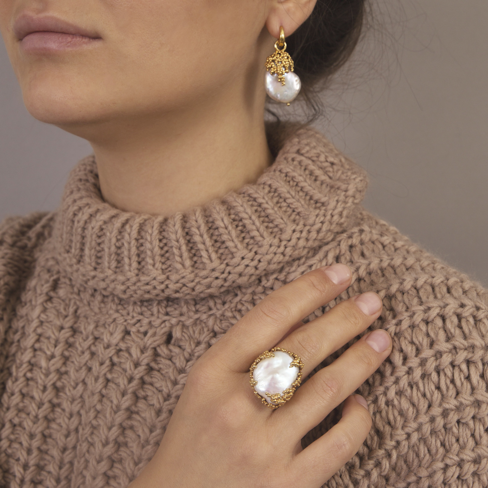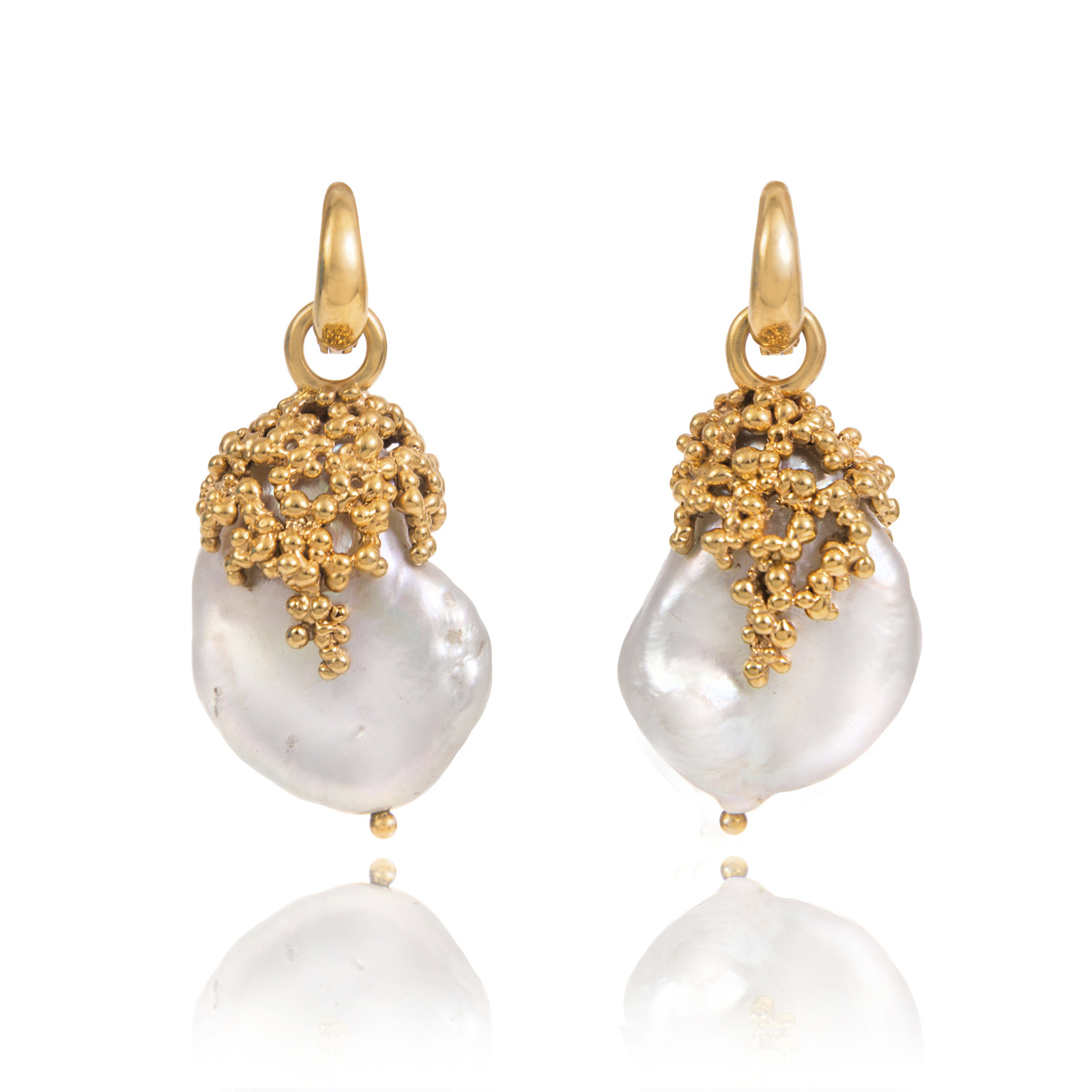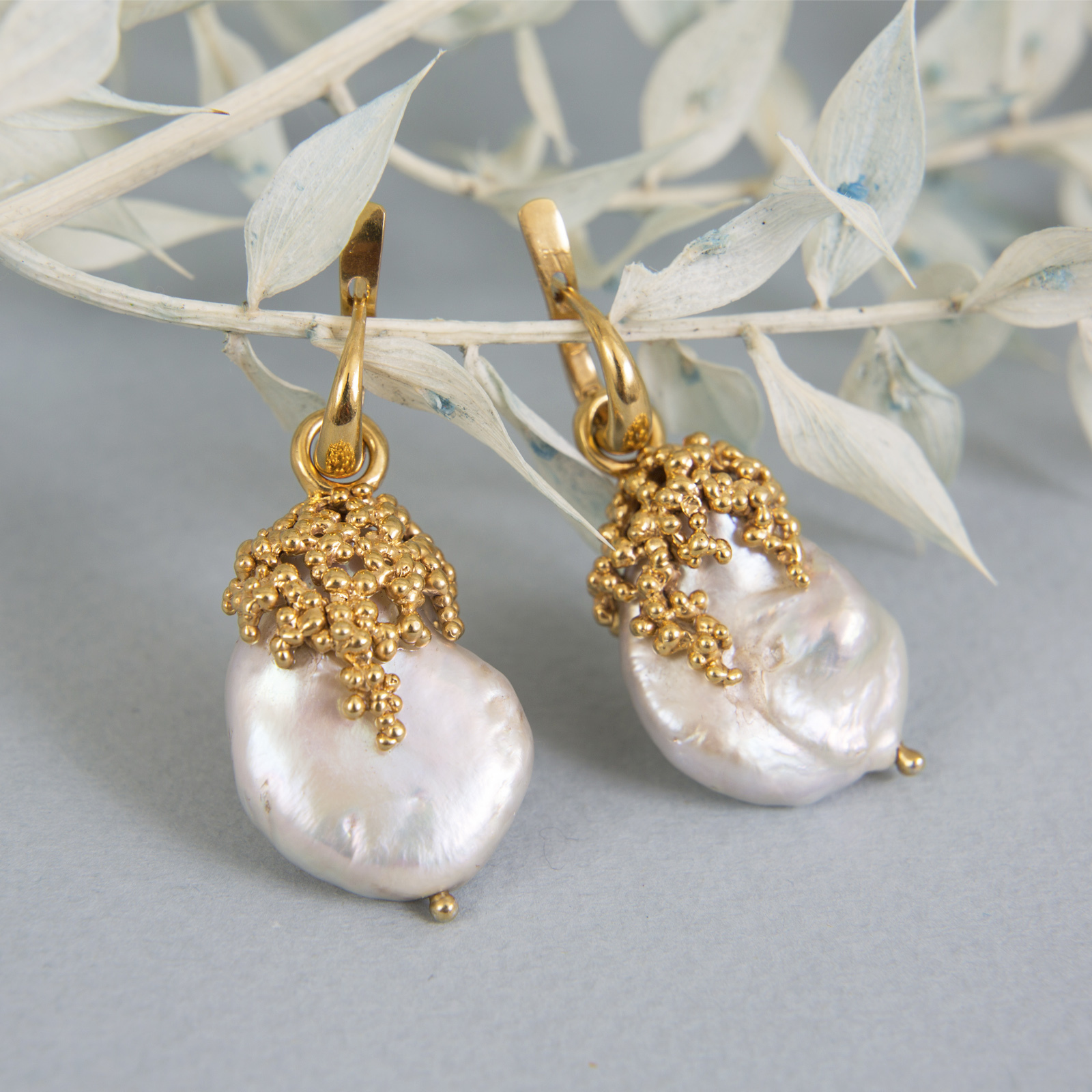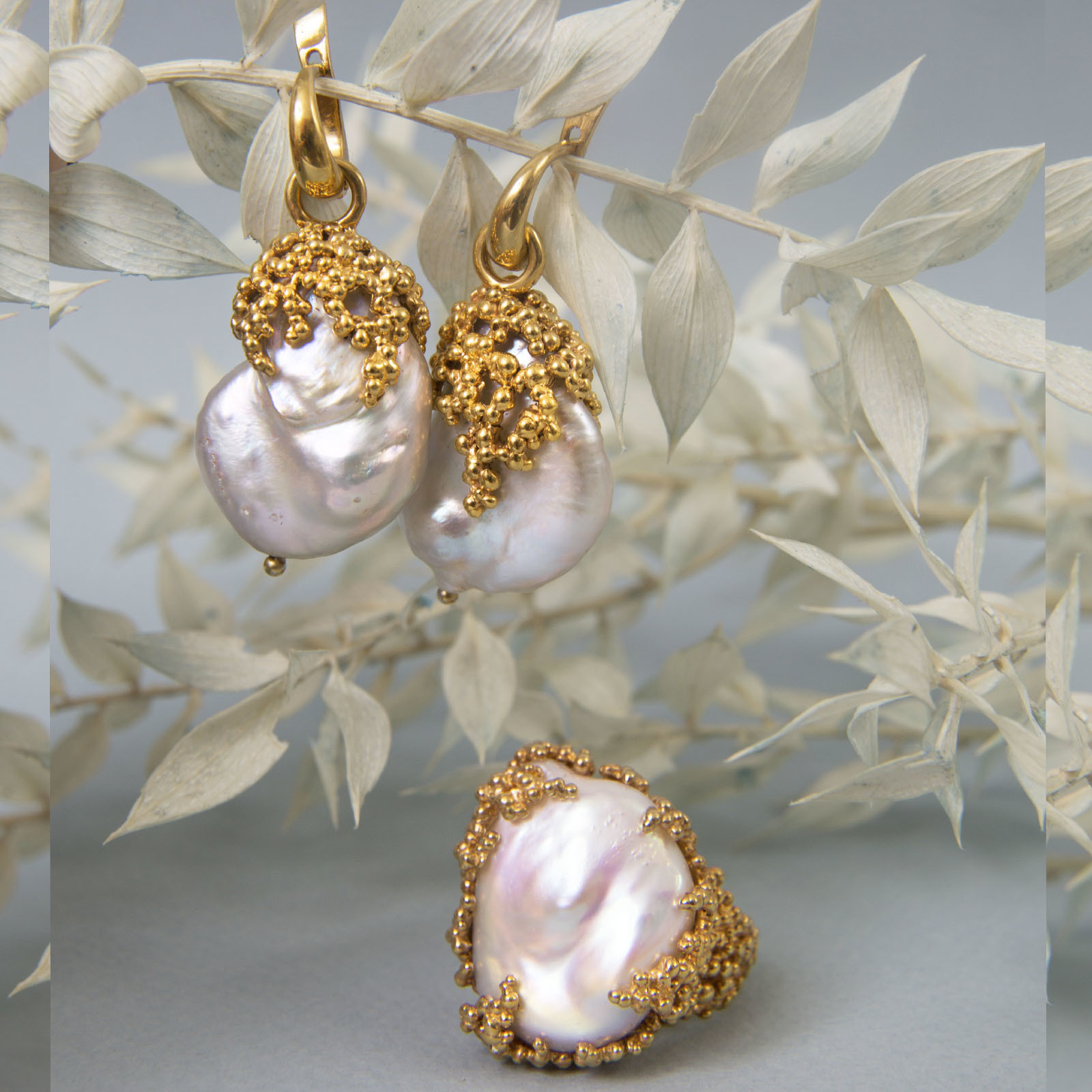 Мы создаем уникальные броши с барочным жемчугом, наиболее популярнее из них – птичка, рыбка, с белым жемчугом, выполненные в серебре с позолотой. Среди бесконечного разнообразия форм барочных жемчужин мы подбираем те, которые напоминают птичку, сидящую на ветке, или рыбку, с тельцем и пышным хвостом. Далее художник дополняет жемчуг головкой с гранатовыми глазками, формирует перья,, хвост или плавники. Каждая брошь дополнена петелькой для цепочки. Матовая отделка поверхности сочетается с полированными деталями, руной гравировкой и блеском цирконов
