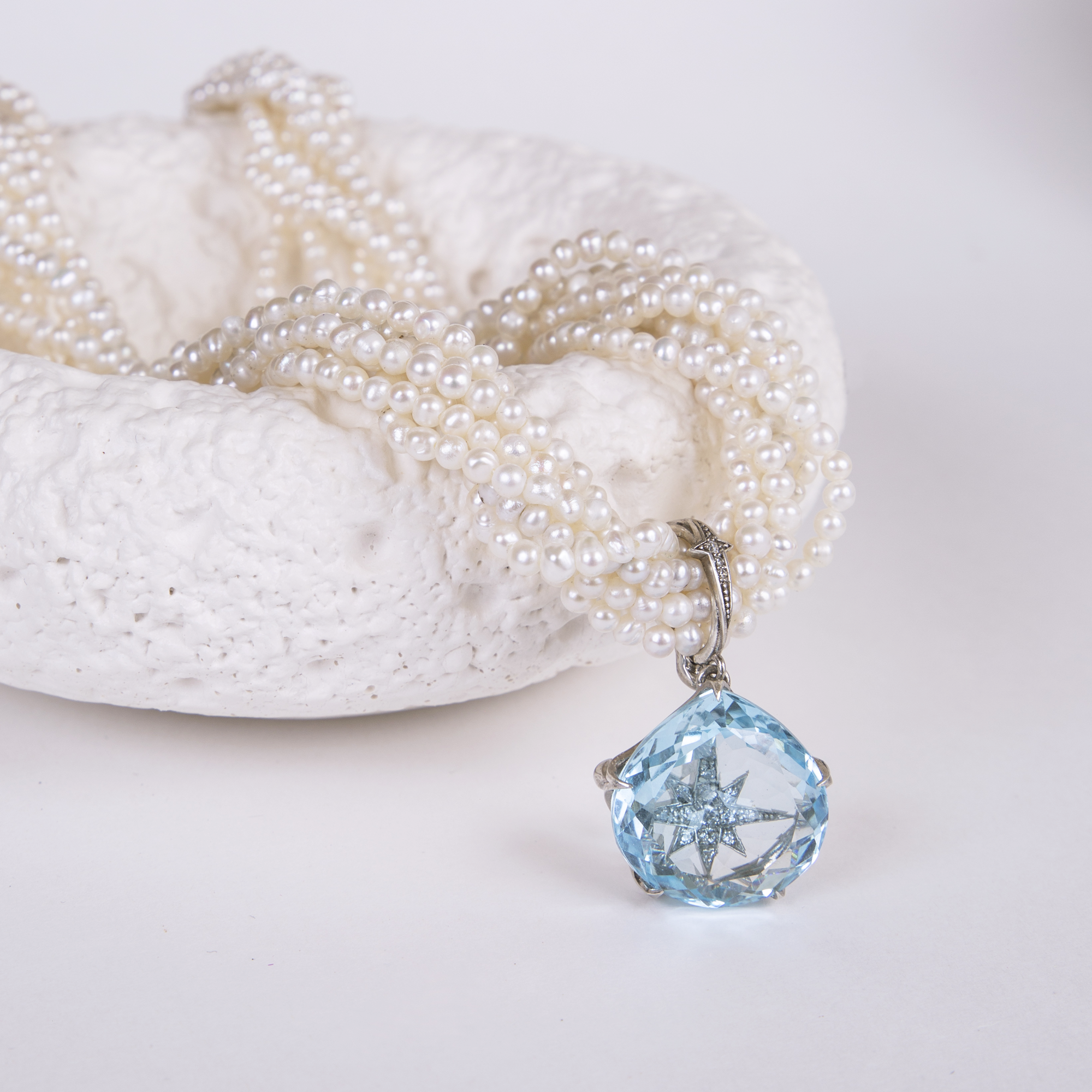 Подвеска с топазом (огранка выполнена в нашей мастерской), а под ним - путеводная звезда. Камень играет гранями, создает невероятный оптический эффект Серебро 925, бриллианты лабораторные, родиевое покрытие. Подвеска снимается, ее можно носить на цепочке или на бусах